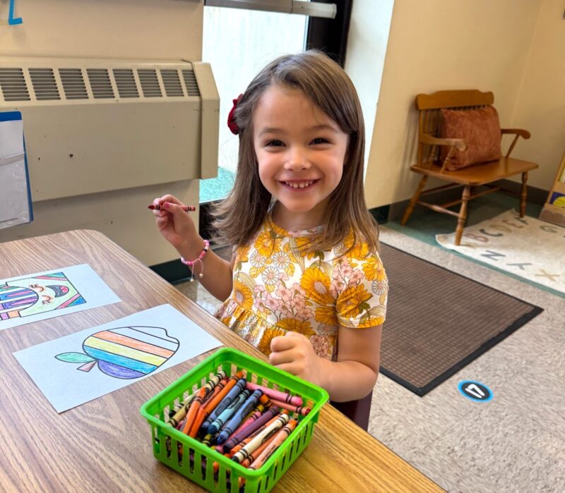 Through playing, playing, counting, singing, talking, listening, and much more, children in our pre-kindergarten classroom develop confidence and skills as they enter school, many for the first time. They become more independent in daily activities and gain increased motor control. They develop social skills, learning how to make friends and how to be a friend, and have dedicated special time each week to music, library, worship, and even physical education. We lay a foundation for each child’s spiritual growth as they learn about God’s love and care for us all.